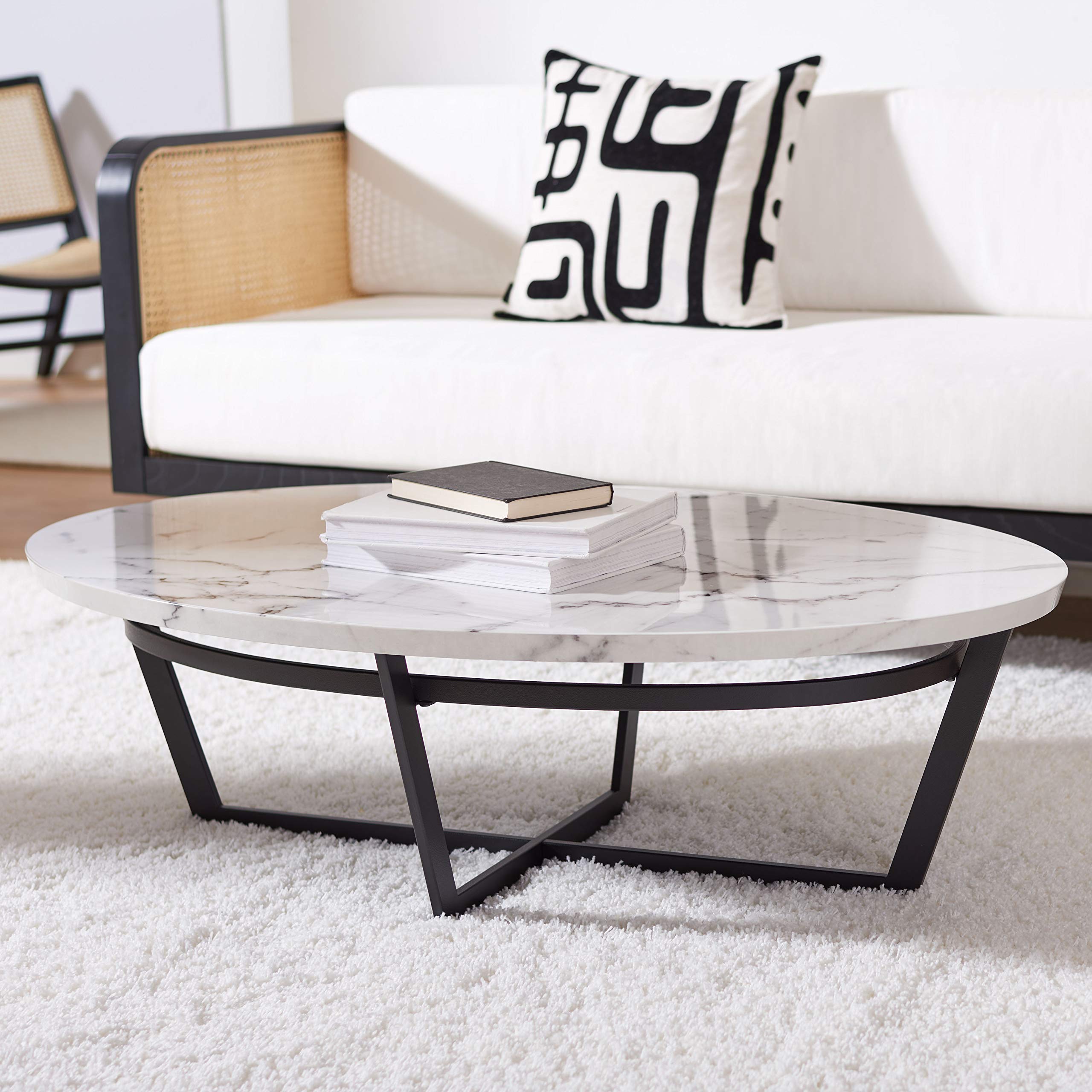 Beautiful Black Oval Coffee Table Design With Its Black Faux Marble Top